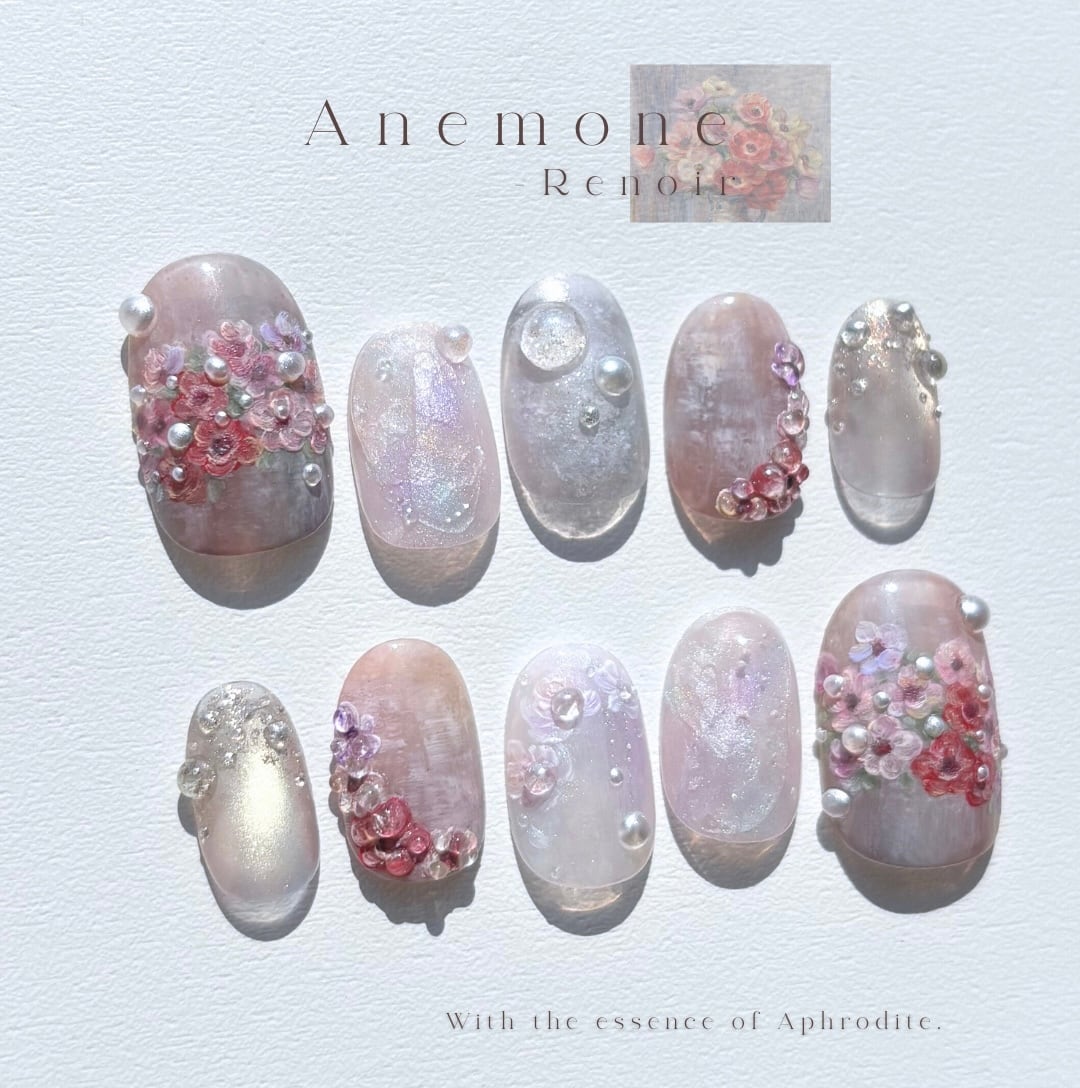 ルノワールが描いた柔らかな色彩のアネモネと、アフロディーテの神話のエッセンスを宿したデザインに仕上げました。
